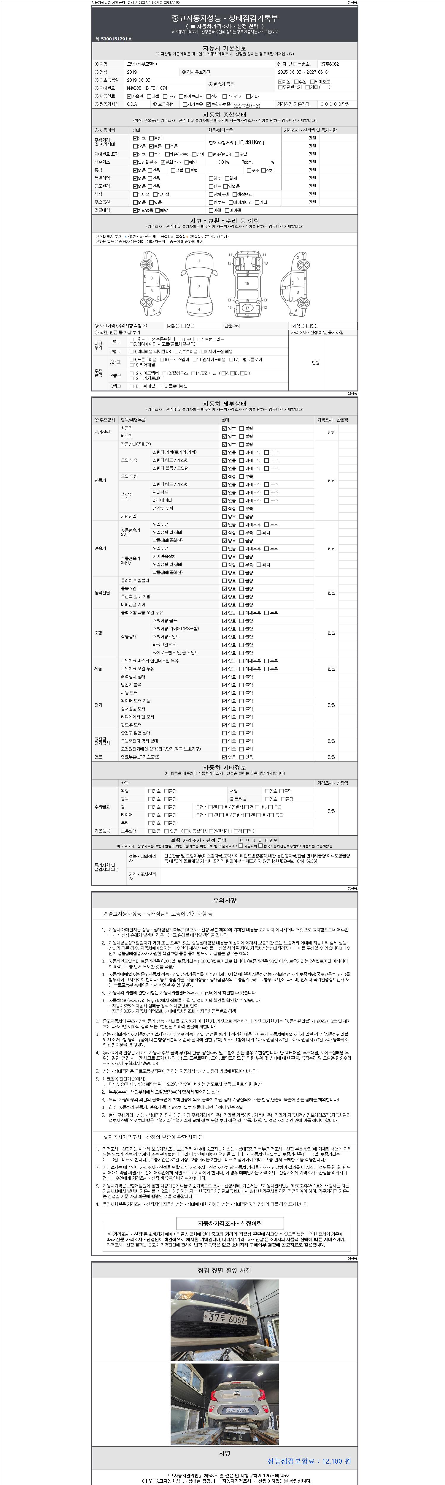 | 주행거리 | 16,491 km | 차량번호 | 37두6062 | 사고유무 | 성능기록부 참조 | 제시번호 | 제 2147483647 호 |