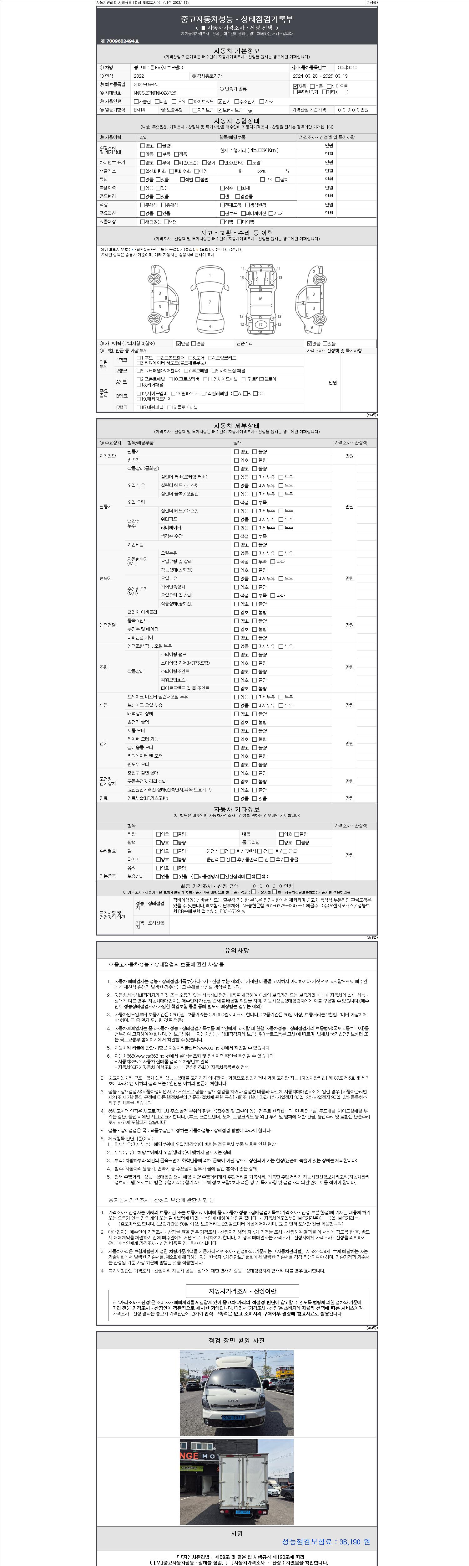 | 주행거리 | 45,034 km | 차량번호 | 90러9010 | 사고유무 | 성능기록부 참조 | 제시번호 | 제 2147483647 호 |
